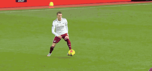 第41分钟,萨卡在右路闪转腾挪,强行下底后倒三角传中,本·怀特原地摆腿,迅速起脚,但打得还是太正,没能给马丁内斯造成威胁。