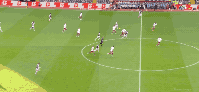 第21分钟,枪手打出小团队配合,厄德高送出精妙直塞,萨卡果断传中,埃泽将球推进空门。但边裁第一时间举旗示意越位,萨卡在接球时的确处于越位位置,进球被秒吹。