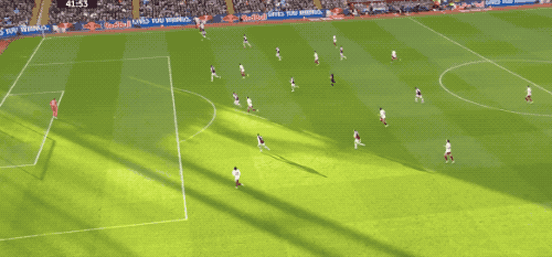 第65分钟,特罗萨德传球被抢断,维拉的反击速度相当快,沃特金斯面对多人包夹起脚射门,拉亚再次做出关键扑救。